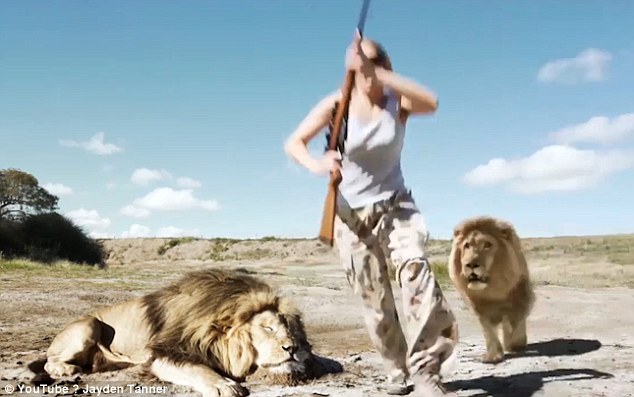 Il video comincia con il leone morto a terra. Una donna con un fucile in mano si posiziona accanto pronta ad essere fotografata. L’uomo che sta con lei aziona lo scatto automatico della sua macchina fotografica prima di raggiungere la compagna accanto al leone. “Abbiamo un paio di cose da appendere sul muro di casa” dice lui ridendo. Poi, prima che la macchina faccia lo scatto fotografico (il filmato intanto va avanti), l’uomo sorride e fa il segno del bicipite. Successivamente si alza per controllare la macchina fotografica e la donna che è accaduto a lui comincia a scappare terrorizzata: un secondo leone è infatti arrivato di corsa e la sta inseguendo. Il filmato si conclude infine con il leone che sembra saltare davanti alla telecamera.