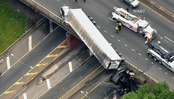 Nel gennaio del 2015, un tir con rimorchio, per evitare di prendere in pieno delle auto ferme sulla statale I-95 dello Stato americano del New Jersey sterza improvvisamente finendo, dopo aver superato il guard rail, nell’altra corsia.