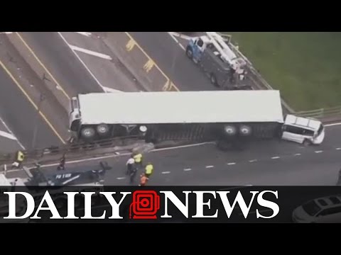 NEW YORK – Un tir che viaggia su una superstrada del Bronx, uno dei cinque boroughs che formano la città di New York, resta in bilico su un ponte della superstrada che attraversa la città dopo essere finito fuori strada. Le squadre di soccorso sono intervenute in forze per evitare che il camion cadesse dal cavalcavia. Le immagini sono impressionanti e il mezzo pesante sta piegato e sembra quasi cadere .
