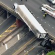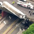 L’incidente è avvenuto lunedì. Il tir ha sfondato il guard rail ed è rimasto in bilico su un cavalcavia. Nello scontro sono rimasti coinvolti diversi veicoli e almeno due persone sono state portate in ospedale.