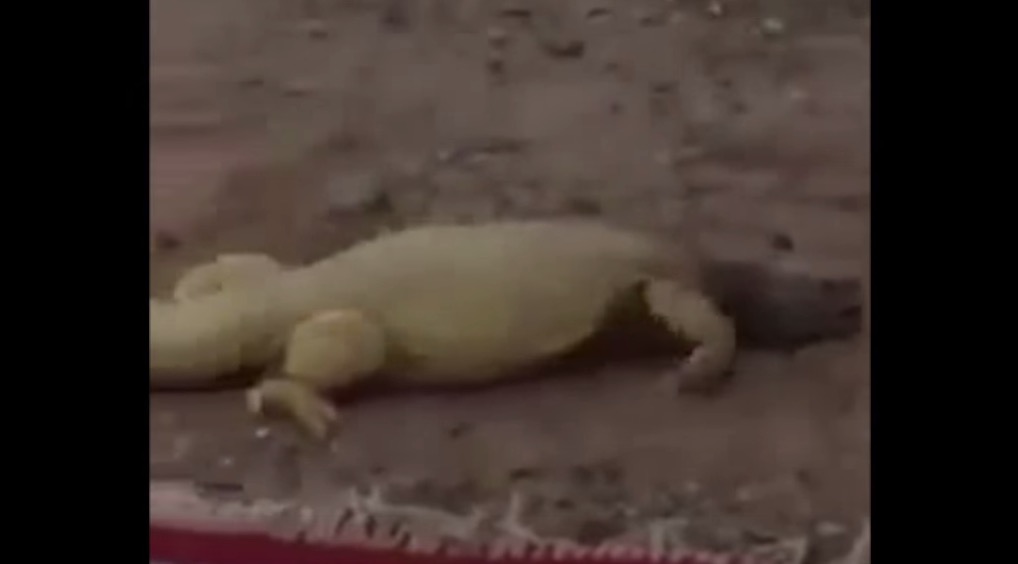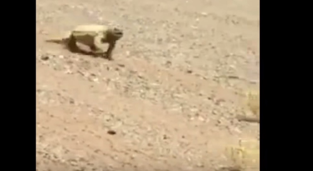 Nel filmato, pubblicato su YouTube, si vede la povera lucertolona zampettare rapidissimamente sulla sabbia rovente, sotto il sole a picco. Finalmente il rettile riesce a raggiungere l’ombra, vicino al tappeto steso dai due uomini, forse per pregare, e arrivata qui si lascia andare quasi tramortita dal caldo. A quel punto uno dei due, quello che ha ripreso la scena col telefonino, esclama “Allah Akbar”, “Dio è grande”, come se fosse l’iguana a rendere grazie al Signore per aver potuto finalmente trovare un posto che non ustionasse le sue zampette.