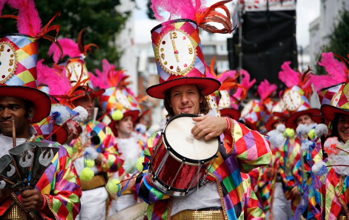 Inizialmente il carnevale veniva celebrato in un luogo chiuso, ma dal 1966 si celebra per le strade del quartiere di Notting Hill. I suoi organizzatori lo definiscono “il secondo carnevale più grande al mondo”. Di sicuro è il festival di strada più grande d’Europa.