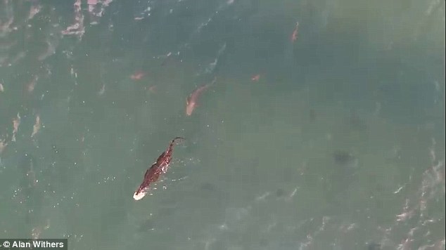 SYDNEY – Un coccodrillo marino è inseguito da diversi squali che cercano di rubargli la tartaruga marina che il coccodrillo ha afferrato per nutrirsi. Queste incredibili riprese aeree sono state realizzate nel parco nazionale di Garig Barlu nel Territorio del Nord australiano. Per riuscire a scappare con la sua preda, il rettile decide di nuotare a pelo sull’acqua tenendo la tartaruga fuori dall’acqua.
