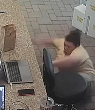 La donna che indossa una divisa giallo scura ha con sé una bevanda calda che finisce anch’essa a terra. Come mostra il filmato YouTube, la donna ha un colpo di sonno e si lascia andare finendo sul pavimento. Poi, dopo qualche secondo e grazie anche all’aiuto di una collega, si rialza per riprendere il suo posto di lavoro.
