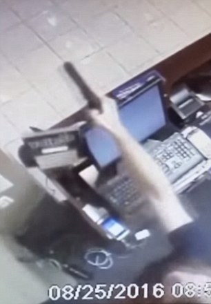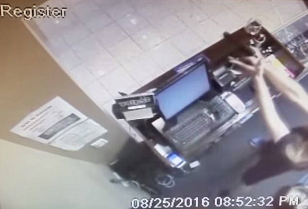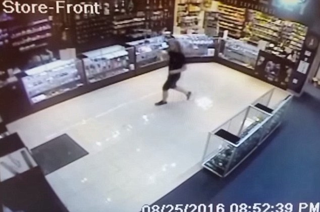 Il commesso ha estratto la pistola, una calibro 9, ed ha cominciato a sparare al ladro senza posare la sigaretta per tutto il tempo. A un certo punto, mentre il rapinatore era in fuga, nel tornare dietro al bancone ha anche tirato una boccata. Il criminale è scappato fuori dal negozio mentre un proiettile ha rotto la porta a vetri. L’uomo si è accertato che il rapinatore non fosse ancora là fuori, ed è tornato tranquillamente dietro al bancone.