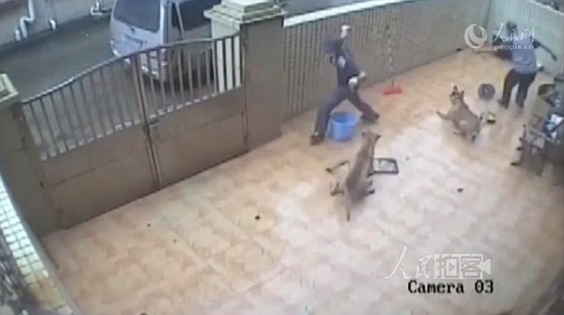 Il filmato rilanciato dal Daily Mail mostra i due cane che vagano nel cortile. Improvvisamente i due animali cominciano ad abbaiare ai due uomini che hanno appena saltato il muro. I due ladri afferrano i cani legandoli al collo. Uno dei due, per scappare fuori dove li aspetta un furgone, prova a vedere se la porta del cancello è aperta. Trovando però la porta chiusa, i due uomini decidono di scavalcare di nuovo il muro alto circa un 1,8 m trascinandosi i due cani che vengono sollevati per il collo.
