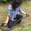 Dopo aver raggiunto la siepe in cui il serpente sta andando ed aver afferrato il rettile, le persone presenti le urlano “Cosa?” “Ma sei pazza?” Dopo averlo afferrato la donna resta in ginocchio. L’animale ha la testa bloccata e con la parte finale del suo corpo cerca di contorcersi. Lei guarda la telecamera ed è assolutamente sicura di sé. Non si conosce il motivo per cui la donna abbia volutamente afferrato il serpente e nemmeno cosa accade dopo. Il filmato lo pubblica il Daily Mail.