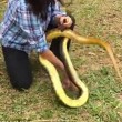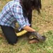 Il video è stato girato in Perù: le persone che commentano quanto sta accadendo, parlano però in inglese. La giovane lo afferra vivo e con le mani nude. La donna non esita e non sembra particolarmente preoccupata: per bloccare il serpente lo afferra per la testa.
