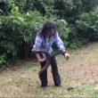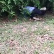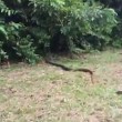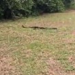 ROMA – Una donna corre verso un boschetto non appena vede strisciare un serpente lungo circa un 1,8 metri. Le riprese hanno catturato il momento della cattura del serpente a mani nude.