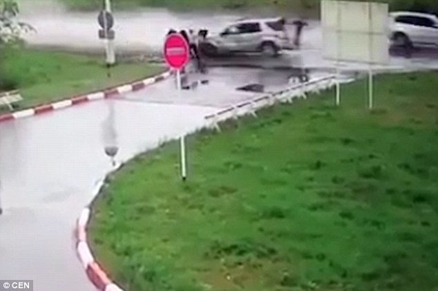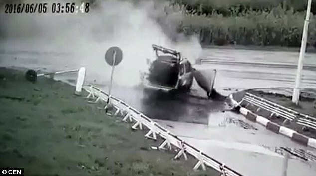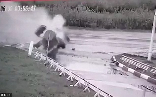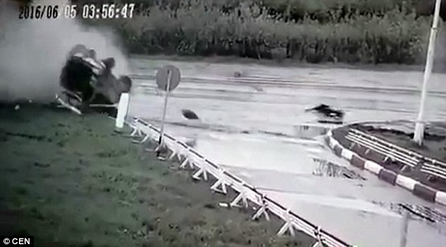 Il filmato mostra il momento in cui la Mercedes sfreccia ad alta velocità finendo su un gruppo di spettatori. L’auto colpisce e uccide due di loro: fra questi c’è il fratello del conducente di 38 anni. La forza dello schianto provocato probabilmente dalla strada viscida, fa finire l’auto in aria.