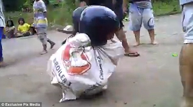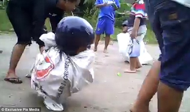 BANGKOK – La maggior parte di noi, quando era bambino ha preso parte ad una corsa con i sacchi. A Bangkok in Thailandia però, dei bambini che partecipano ad una corsa indossano il casco da motociclista. Si tratta di una sfida che sembra essere estrema. Il sacco con cui partecipano alla gara sono alti fino al collo: i bimbi sono in tutto quattro e faticano a muoversi in avanti, sul cemento, con i loro piedi.
