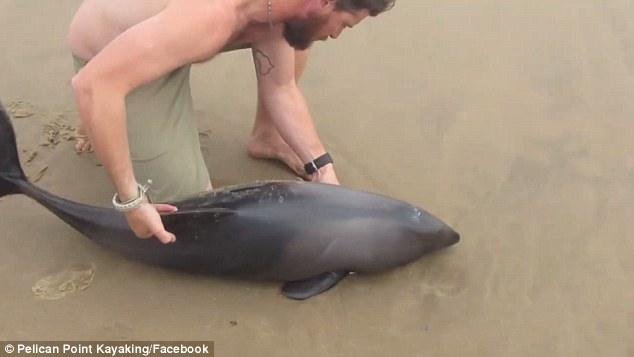 Nell’uscita per le attività giornaliere il team del Pelican Point Kayaking si è imbattuto sulle spiagge di Walvis Bay, in Namibia, in un giovane delfino (un cefalorinco di Heaviside) spiaggiato, ma ancora vivo. Sembrava che il delfino non riuscisse a riprendersi, ma una volta riportato in mare da un ragazzo l’animale ha preso il largo in velocità.
