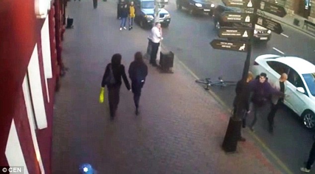 Dall’auto scende la 32enne Olga Khartoniuk, a bordo insieme ad un secondo passeggero. Il ciclista nel frattempo si rialza e scoppia una breve rissa con un ragazzo che arriva dicendo di essere il fidanzato della Khartoniuk. L’uomo rifila al ciclista un pugno in testa e un calcio di karate. La Hyundai nel frattempo si allontana.