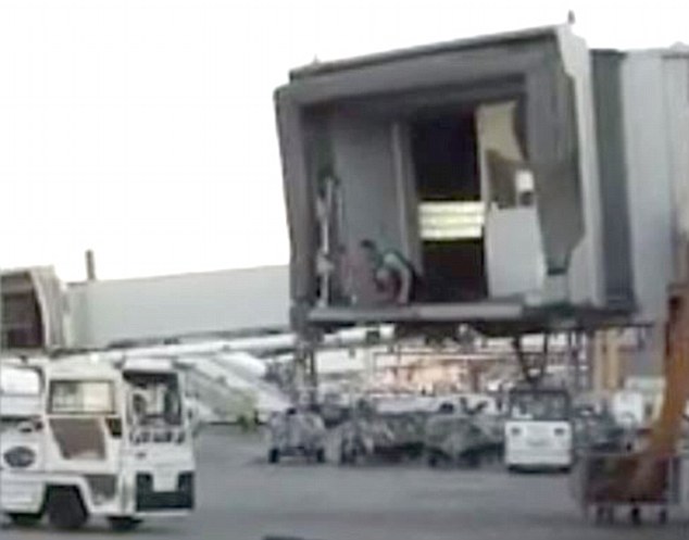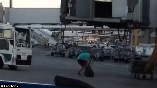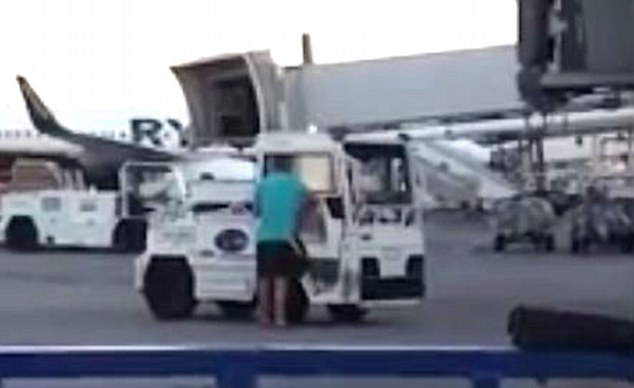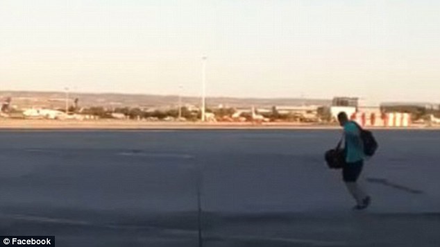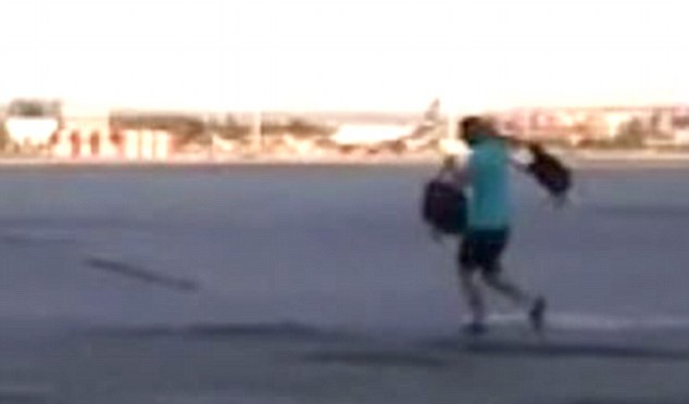 Il turista cerca di fermare l’aereo che sta decollando senza di lui e viene fermato dagli adetti dell’aeroporto.