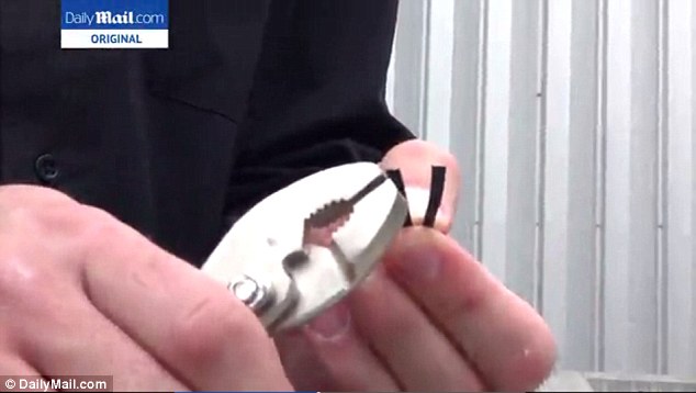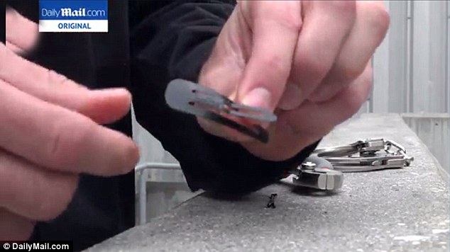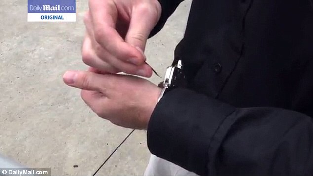 Per farlo ha usato un paio di manette modello Smith e Wesson 100. “Sono le più comuni al mondo”, spiega. Proprio “quelle che utilizzano i poliziotti durante un arresto”.