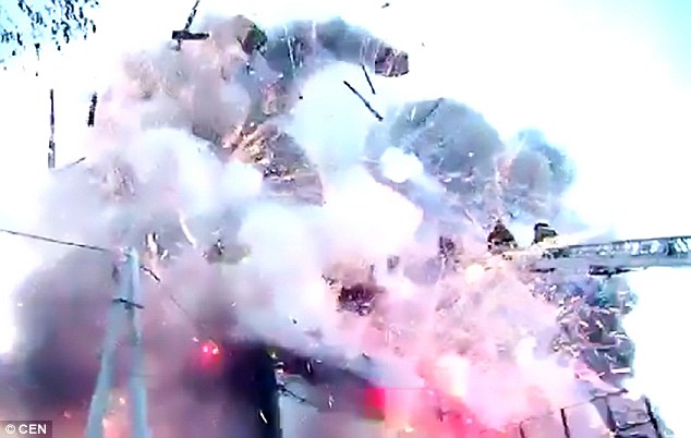 BLAGOVESHCHENSK – Un magazzino di fuochi d’artificio esplode nel momento in cui i pompieri stanno cercando di spegnere un incendio. Accade a Blagoveshchensk, città della Russia orientale. La fabbrica era piena di fuochi d’artificio che, nel momento in cui i vigili del fuoco erano in azione, sono esplosi. Un filmato pubblicato su YouTube e ripreso dal Daily Mail mostra la potente esplosione.
