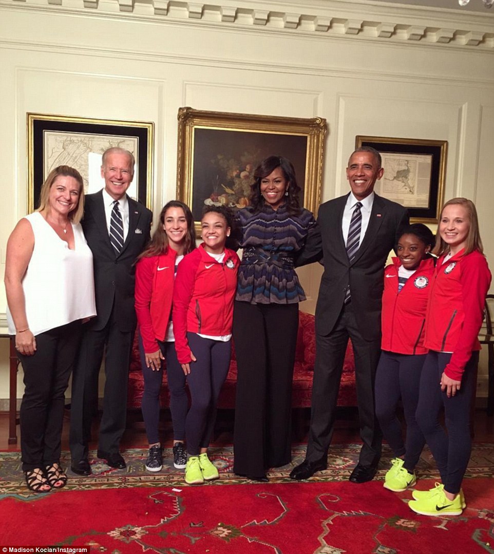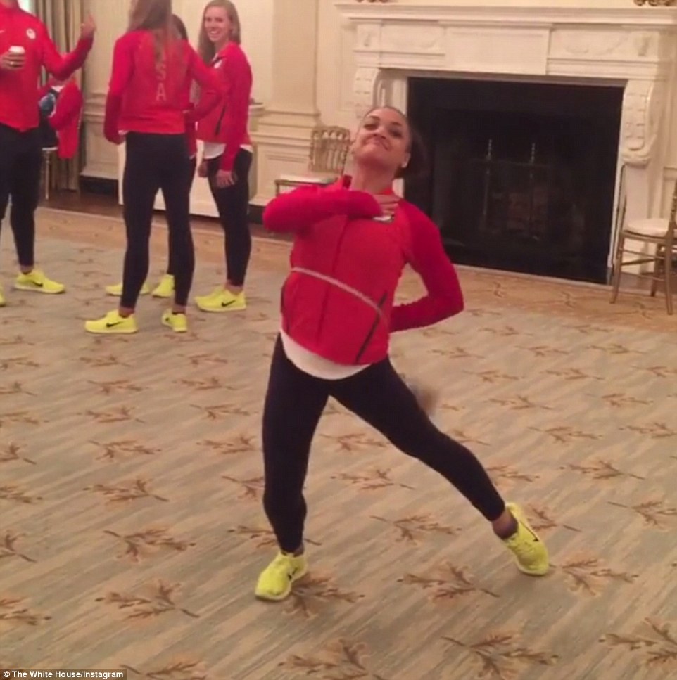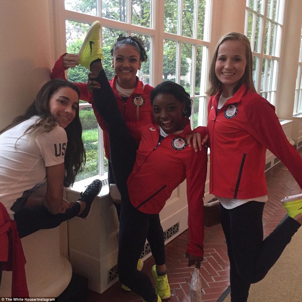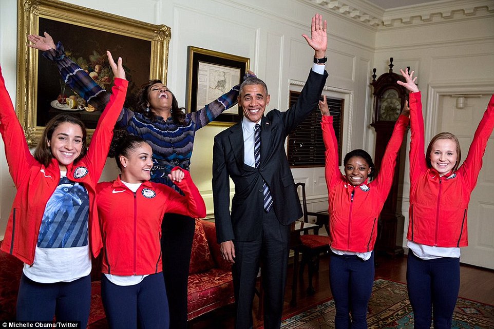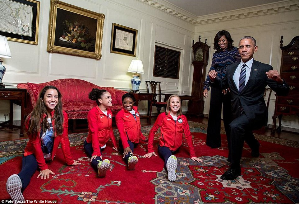 Simone Biles, la supercampionessa di ginnastica, ha donato al presidente un surf molto speciale, con la bandiera americana e i 5 cerchi olimpici disegnati. Obama ha apprezzato e sorridendo ha detto: “I nostro olimpici hanno vinto l’oro più di ogni altri: 46 ori, non male: Poi, tra una battuta e l’altra si è cimentato in un tentativo di fare la spaccata.