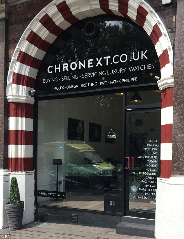 Il negozio conteneva gioielli e orologi. Uno volta fracassato la vetrata, si sono accorti della polizia ed hanno cercato di scappare. La tentata rapina non ha creato vittime tra i clienti e i passanti. Il negozio è assicurato ma i danni si aggirano intorno alle 500mila sterline.