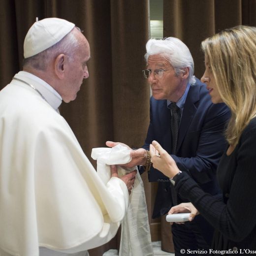 Alla fine dei lavori Papa Francesco, sceso nell’atrio dell’aula Paolo VI, ha conversato per diversi minuti con Richard Gere. Tra i temi affrontati nella tre giorni di lavori della Scholas occurentes, una fondazione istituita dal Papa nell’estate del 2013 per favorire l’educazione attraverso una rete mondiale, con particolare attenzione ai più deboli e fragili, ci sono stati anche quelli ambientali, cari sia a Clooney che a Gere.
