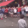 LILLE – Hooligans inglesi che, tra cori e sfottò, lanciano monetine a dei piccoli mendicanti, bambini, forse profughi, che chiedono l’elemosina in una strada di Lille. E’ l’ultima prodezza degli ultras britannici agli Europei di Francia dopo gli scontri sanguinosi di Marsiglia di pochi giorni fa.