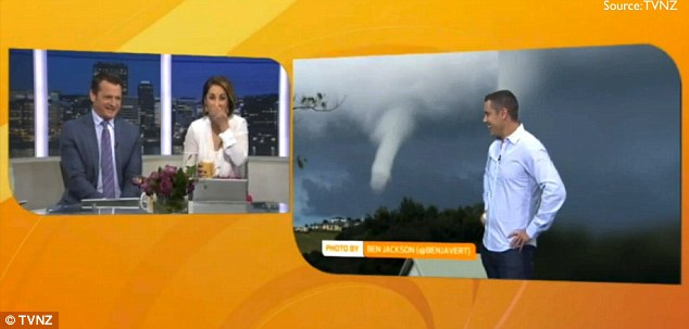 AUCKLAND – Durante lo show mattutino, come in ogni tv che si rispetti ci sono le previsioni del tempo. In Nuova Zelanda però, le nuvole hanno una strana forma. O almeno così pare: Sam Wallace di TVNZ stava parlando del tempo ed è scoppiato a ridere dopo aver visto una nuvola a forma di fallo eretto.