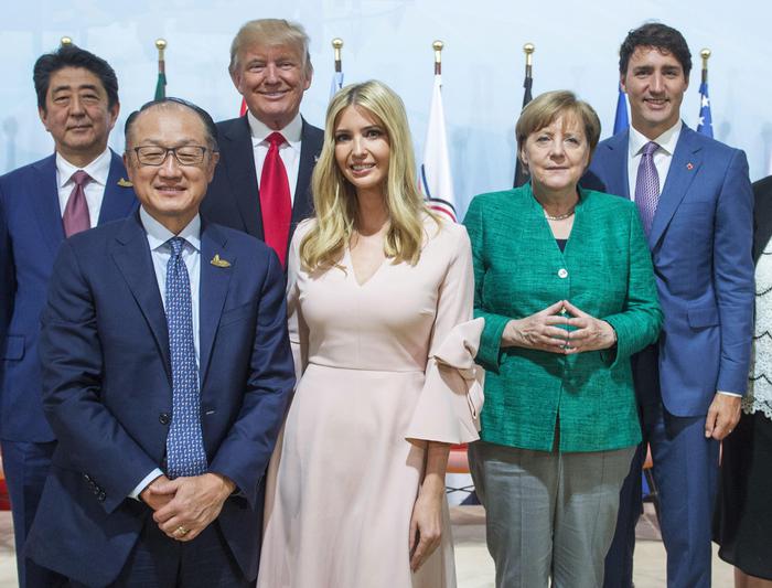 Tra lo stupore dei leader, attorno al paludatissimo tavolo del vertice, con grande naturalezza Ivanka ha partecipato ad una sessione del vertice, sostituendo in tutto e per tutto l’uomo più potente del mondo, seduta tra la premier britannica Theresa May e il presidente cinese Xi Jimping