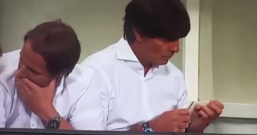 L’allenatore della nazionale tedesca, dopo il caso della partita con l’Ucraina, viene sorpreso dalle telecamere anche contro la Slovacchia. E sui social network il video diventa virale.