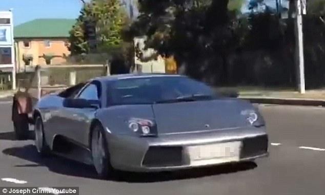 La Murcielago oggi vale fino a 900mila dollari, a seconda del modello. Il conducente della vettura e il passeggero appaiono indifferenti dagli sguardi di traverso diretto verso di loro sulla strada, dagli altri automobilisti. Il veicolo di lusso viaggia lungo una strada a più corsie.