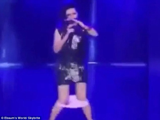 Lei si accorge subito e in tutta fretta, sperando che il pubblico non la veda, ritira su tutto prima di continuare a cantare e ballare. La performance si conclude con lei che cade a terra.