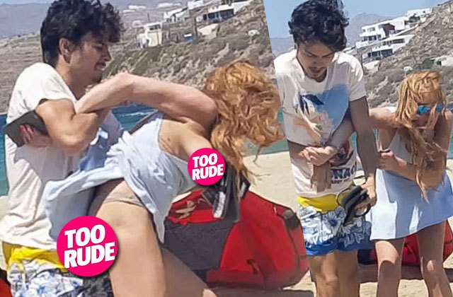 MIKONOS – Lindsay Lohan aggredita sulla spiaggia di Mykonos, in Grecia, dal suo ex fidanzato, il miliardario russo di 23 anni, Egor Tarabasov.