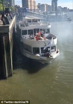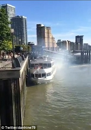 La barca Erasmus ha virato verso il molo di legno a Canary Wharf e si è schiantata contro i flutti mentre dal retro usciva del fumo. Dan Hin e stava camminando lungo il fiume con la moglie Yari ed ha ripreso la scena col suo smartphone: “All’inizio, mai moglie ed io abbiamo pensato che la barca si stesse parcheggiando senza problemi, poi ho notato che la cosa non stava andando a finire bene”.