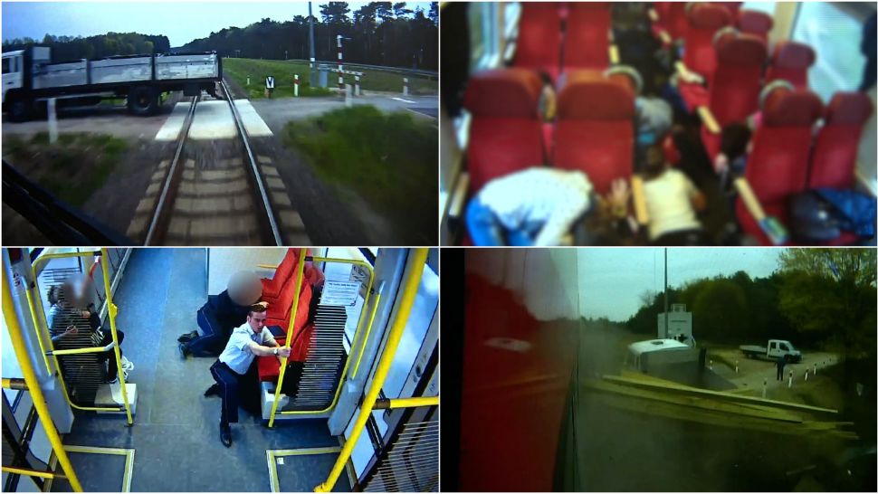 POZNAN – Un treno che sta sfrecciando a 110 chilometri supera un passaggio a livello dove è rimasto fermo un tir. Il macchinista si accorge dell’impatto e corre nei vagoni per avvertire i passeggeri di stendersi a terra. Una corsa sfrenata fatta appena 3 secondi prima che il locomotore colpisse il mezzo fermo sulle rotaie. Il macchinista riesce comunque aproteggere il più possibile le persone a bordo dalle conseguenze dell’incidente.