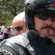 Il motociclista però si avvicina all’auto per traverso su un marciapiede e comincia a litigare con la donna attraverso il finestrino dell’auto come a volerla afferrare. La persona che sta riprendendo la scena finita poi su YouTube, a questo punto si avvicina per riprendere meglio la lite. Prima che l’auto accosti, il motociclista si sdraia sul cofano. Poi, con ancora il casco in testa, comincia a discutere con la donna alla guida.