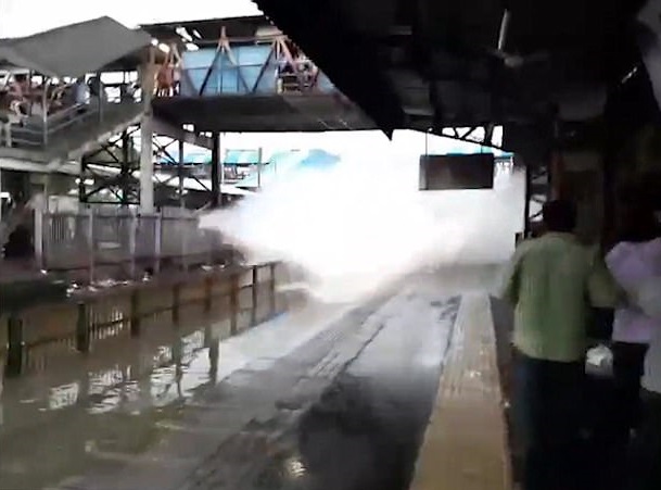 MUMBAI – Un treno arriva nella stazione allagata e l’onda travolge le persone in attesa sulla piattaforma. Accade in India nella stazione di Nalla Sopara a Mumabai, dove tra martedì e mercoledì sono caduti 30 centimetri di pioggia.