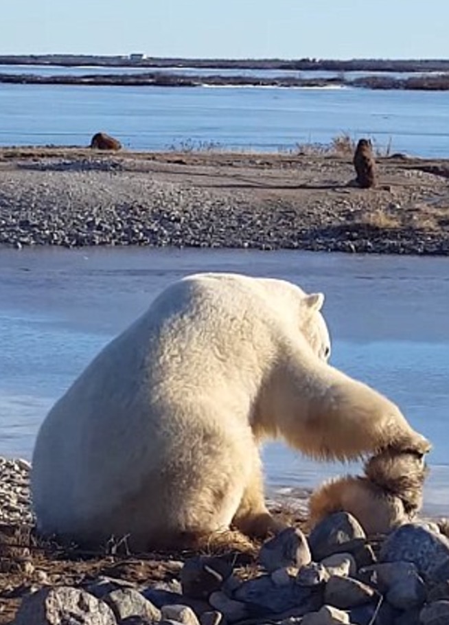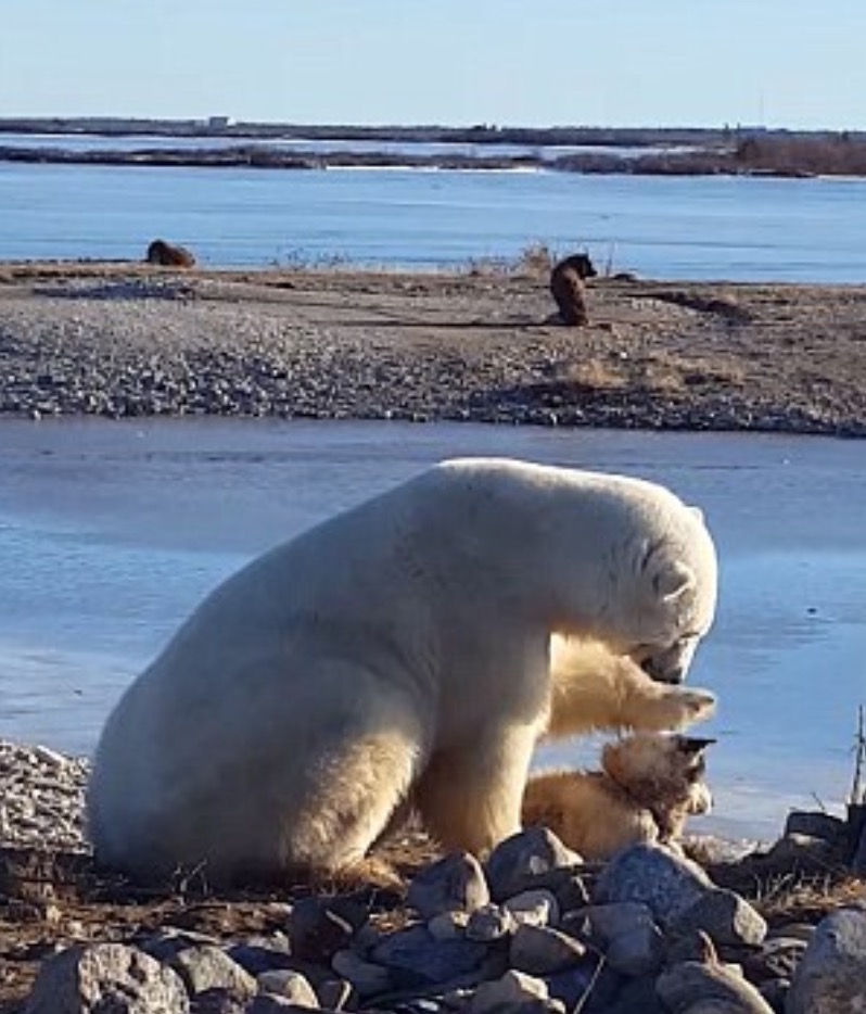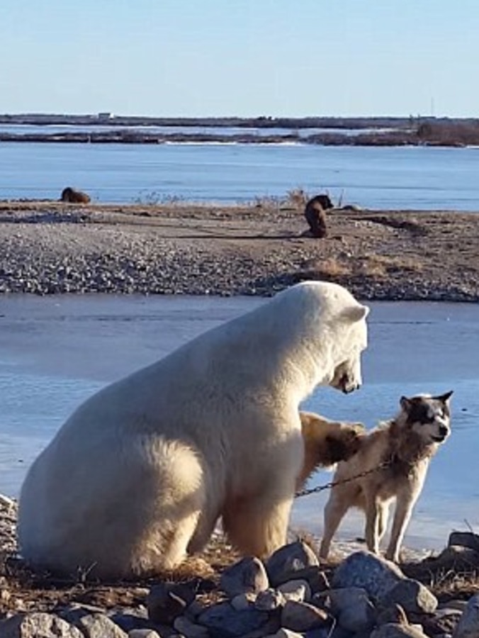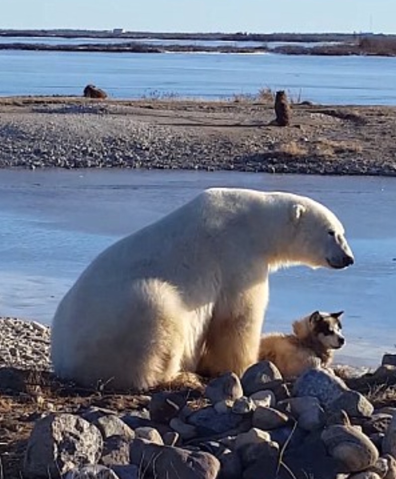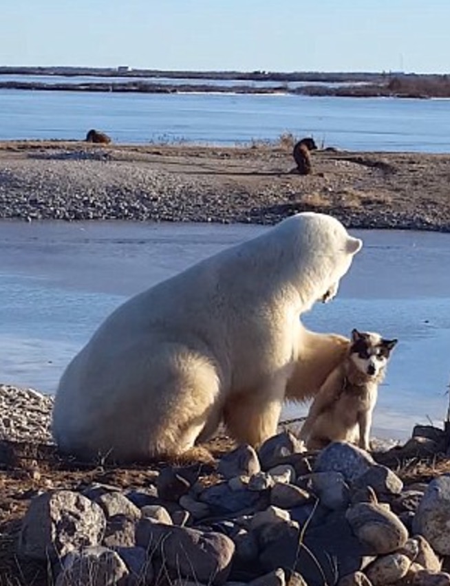 OTTAWA – Un orso polare che accarezza e fa le coccole ad un cane. La dolcissima scena è stata ripresa da una guida turistica in Canada, nella provincia di Manitoba.