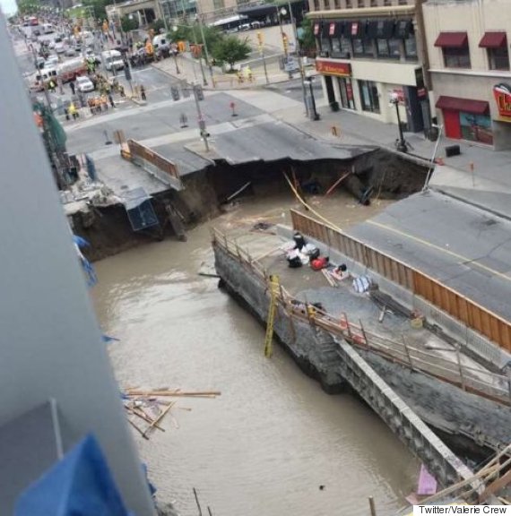 Alcuni edifici che si trovano nei dintorni sono stati evacuati per precauzione ma non si sono registrati feriti. Un passante ha ripreso il momento dell’auto che precipita nel buco pieno d’acqua, allagato anche a causa della rottura di alcune tubature. Dato che in città è in corso la costruzione della metropolitana leggera, l’ipotesi è che il cedimento sia dovuto ai lavori di scavo di un tunnel.