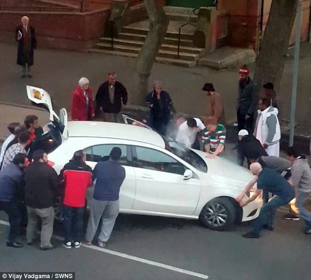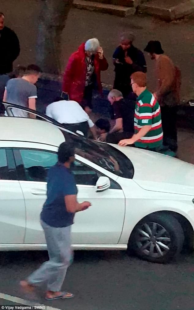Una testimone di 23 anni, Vijay Vadgama, ha girato il video dell’incidente pubblicato poi sul Daily Mail e YouTube. Nelle immagini si vedono i passanti che gridano “stop” alla persona alla guida prima di mettersi a sollevare l’auto.