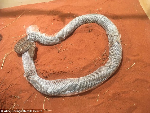 ALICE SPRINGS – Un pitone, per cambiare pelle ha compiuto un giro con il proprio corpo ed è rimasto così per circa tre ore prima di uscire di nuovo fuori con una pelle nuova.