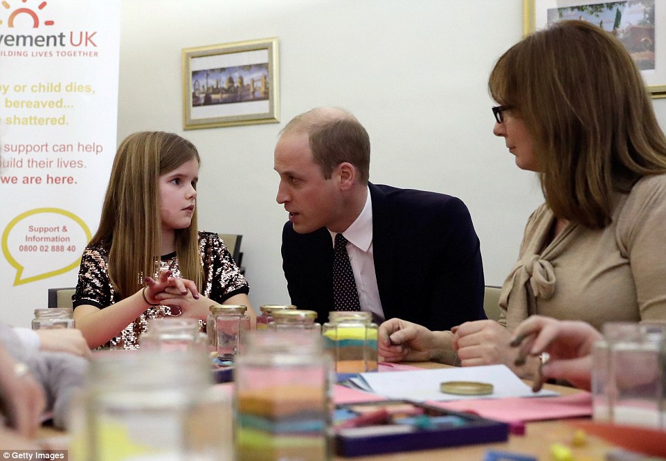 Il duca di Cambridge, in visita presso la struttura, ha confortato la piccola raccontandole di aver subito il suo stesso dolore: la morte della madre, lady Diana Spencer, moglie del principe Carlo, tragicamente scomparsa in un incidente stradale a Parigi nel 1997 insieme al compagno Dodi al-Fayed.
