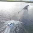 Nei giorni scorsi, un drone ha ripreso il momento in cui un conducente Uber ha provato ad attraversare la strada che sta per essere inghiottita dalla marea. Il taxi alla fine è riuscito a raggiungere la parte più alta della strada. Le persone a bordo sono state però costrette a bagnarsi i piedi, dato che l’acqua ha invaso parte dell’auto.