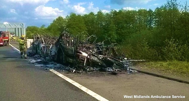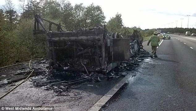 Le ambulanze e i pompieri sono arrivati sull’autostrada M42 vicino a Warwickshire ed hanno trovato solo i resti fumanti del bus. Gli altri studenti erano intanto saliti a bordo di un nuovo bus. Solo quattro ragazzine di 10 anni sono state portate in ospedale di Birmingham per intossicazione e saranno dimesse a breve. Anche il conducente e 13 studenti sono stati visitati dopo aver inalato del fumo.