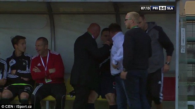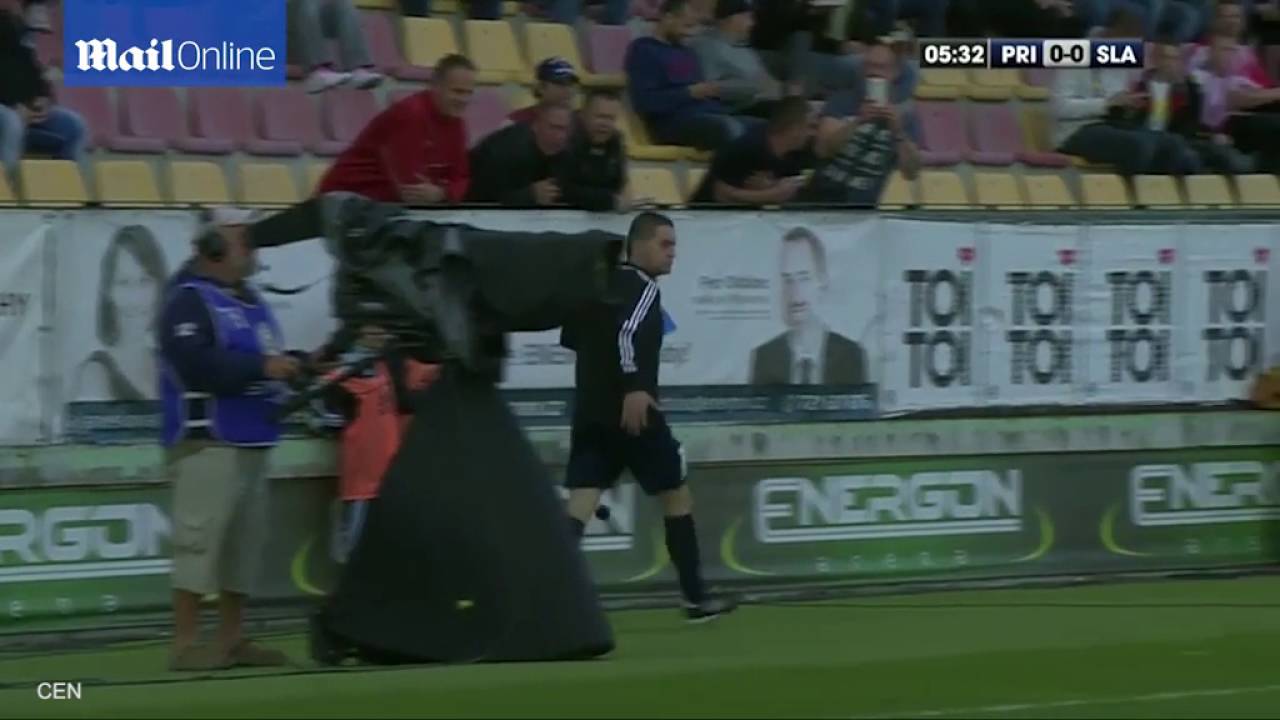 PRIBRAM – YOUTUBE Quarto uomo ubriaco in campo viene portato via. Durante il match tra Pribram e Slavia Praga valida per il massimo campionato della Repubblica Ceca, il quarto uomo designato, Marek Pilny, si è presentato a bordocampo in stato confusionale. Dopo alcuni momenti imbarazzanti e una rovinosa caduta, l’arbitro è stato portato via dagli uomini della sicurezza: come mostrano le immagini l’uomo è ubriaco.