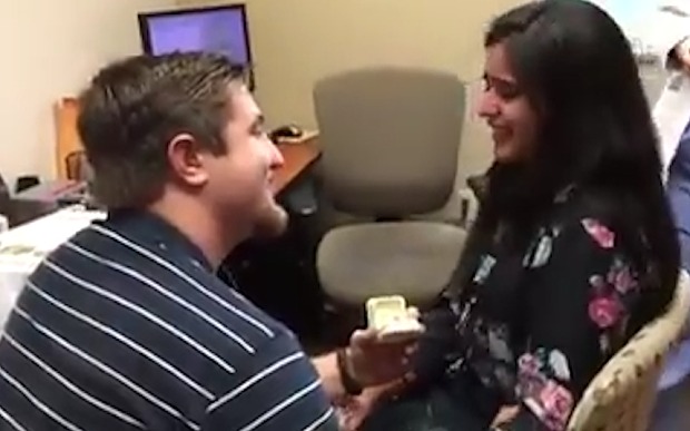 Accanto a lei, al momento del test post operatorio, c’era il suo fidanzato Kevin che dolcemente le ha chiesto: “Amore mi senti?”. E il sorriso impagabile sul volto di Andrea è stato impagabile. A quel punto lui si è inginocchiato, ha tirato fuori il fatidico cofanetto e le ha fatto la proposta: “Io sono innamorato di te, sei la mia migliore amica… mi vuoi sposare?”