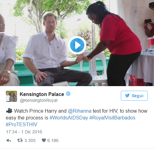 BRIDGETOWN – Il principe Harry d’Inghilterra incontra la pop star Rihanna sull’isola di Barbados, in occasione dei festeggiamenti per i 50 anni dall’indipendenza dell’isola dalla Gran Bretagna. I due partecipano insieme al concerto celebrativo a Bridgetown e si siedono uno accanto all’altro. Durante la feste per l’indipendenza partecipano insieme anche ad un’iniziativa per promuovere la Giornata mondiale contro l’Aid s e si fanno fare il test Hiv durante una visita a un centro specializzato nella cura della malattia a Bridgetown.