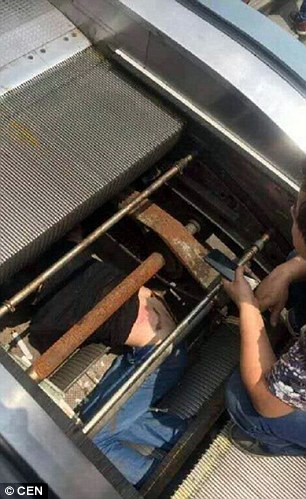 CHONGQING – Un operaio che sta riparando una scala mobile resta incastrato all’interno del dispositivo. Per sua fortuna, l’uomo riesce ad evitare di restare schiacciato. Le immagini del suo salvataggio sono inquietanti: parte della scala mobile viene rimossa e in una delle foto che seguono, l’unica cosa che spunta è la sua testa.