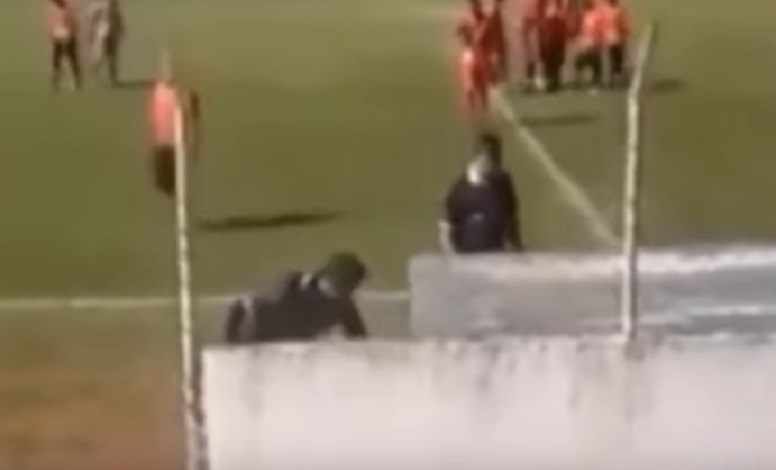 L’arbitro, che nella vita fa il poliziotto e difende il suo operato, rischia ora una sospensione di due anni. Un video postato su YouTube mostra quanto accaduto.