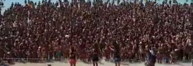 PORTO CESAREO – Al lido Le Dune di Porto Cesareo, a Ferragosto è andata in sciena una sfida insolita. Nello stabilimento salentino, circa mille persone si sono prestate ad una performance di massa che prevedeva di cantare tutti insieme “Andiamo a comandare”, il noto tormentone estivo di Fabio Rovazzi.