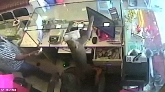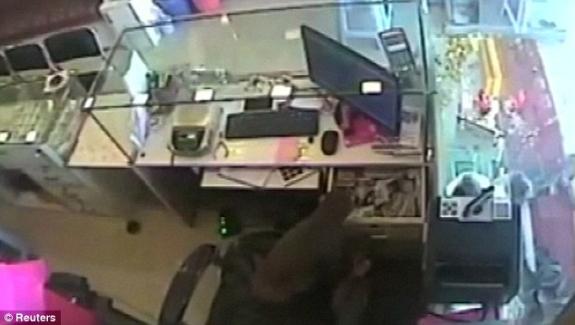 Una volta all’interno della gioielleria, l’interesse della scimmia si è spostato alla cassa. Le immagini parlano da sole: la scimmia apre il cassetto ed afferra una mazzetta di soldi e se la mette in bocca. Poi salta sulla cassa e scappa via uscendo dall’attività. Il proprietario prova ad inseguirla e non è noto se ci sia riuscito oppure no a riacciuffare il denaro (il filmato finisce prima). L’unica cosa certa è che ci ha provato, uscendo di corsa dal negozio.