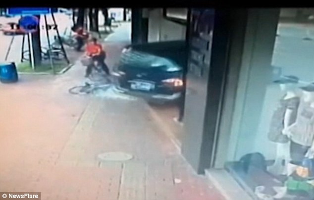 FOSHAN – Un’automobilista ha perso il controllo ed è finito con la sua auto dentro ad un negozio di abbigliamento a Foshan, città cinese che si trova nella provincia del Guandgdogn. L’incidente è avvenuto lo scorso mercoledì: i filmati ripresi dalla telecamera di sicurezza ha ripreso il momento in cui la monovolume sfonda la porta e finisce contro un bancone. Prima dell’impatto con la porta, come mostra il filmato pubblicato su YouTube e rilanciato dal Daily Mail, si vede la monovolume che arriva a tutta velocità schivando per pochissimo un ciclista che sta passando davanti al negozio.