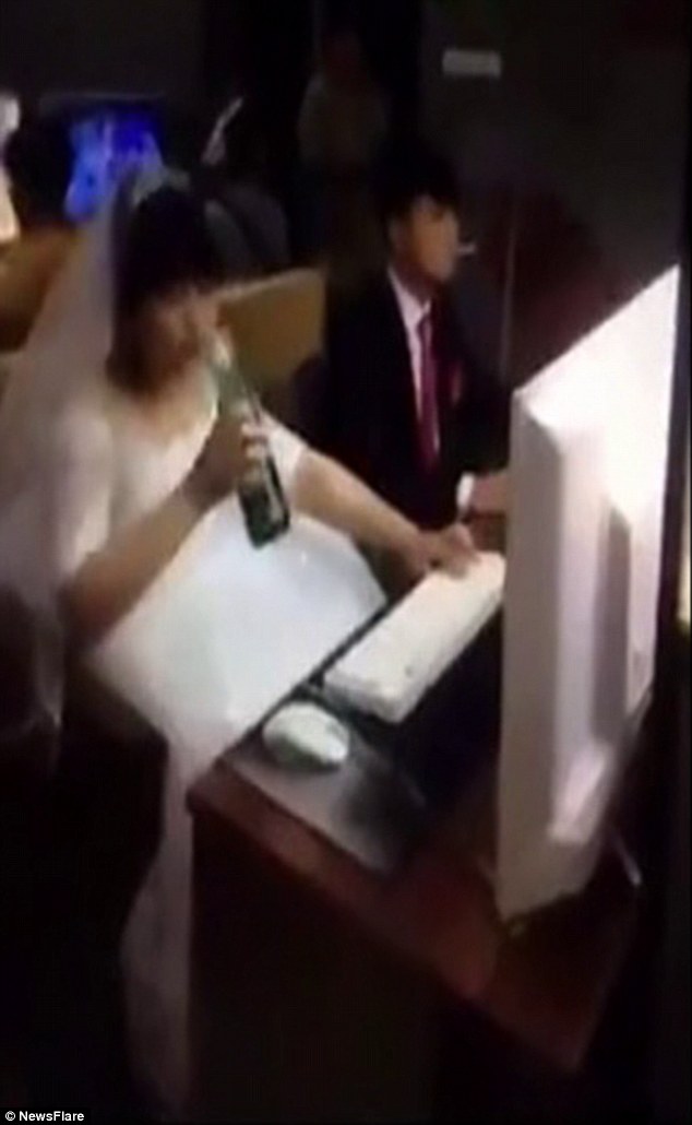 ZIBO – Una coppia cinese si sposa e poi con ancora gli abiti della cerimonia, corre all’internet caffè per giocare ai videogiochi con una birra in mano. Strano modo di celebrare le nozze per una coppia cinese che vive a Zibo, città da 4,5 milioni di abitanti della provincia di Shandong. Lo sposo, oltre alla birra si fuma anche una bella sigaretta.